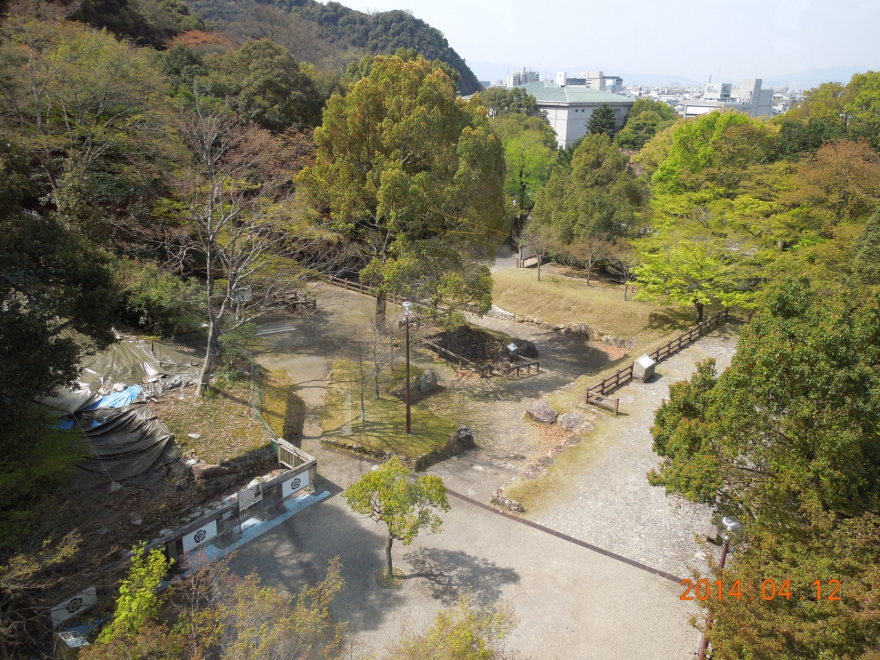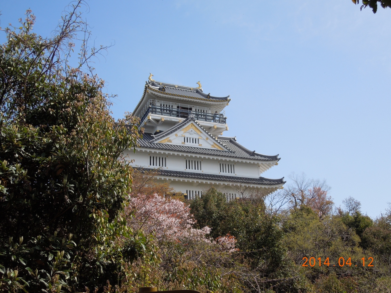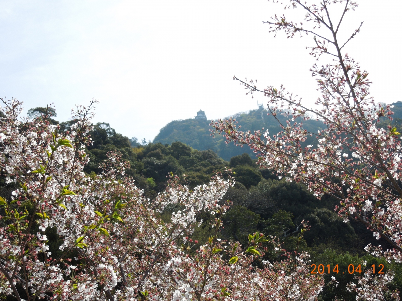 朝早かったので直近の駐車場が空いていました。そこから歩道橋を渡りロープウェイ乗り場に向かいます。途中、咲き終わりの桜がキレイでした。遥か山の上に天守が小さく見えます。ロープウェイを待つ間に、麓の居館跡を見学、立派な石垣が発掘されています。ここ高層の御殿を立てて信長が住んでいたんですな。信長や濃姫の夢のあと・・・。