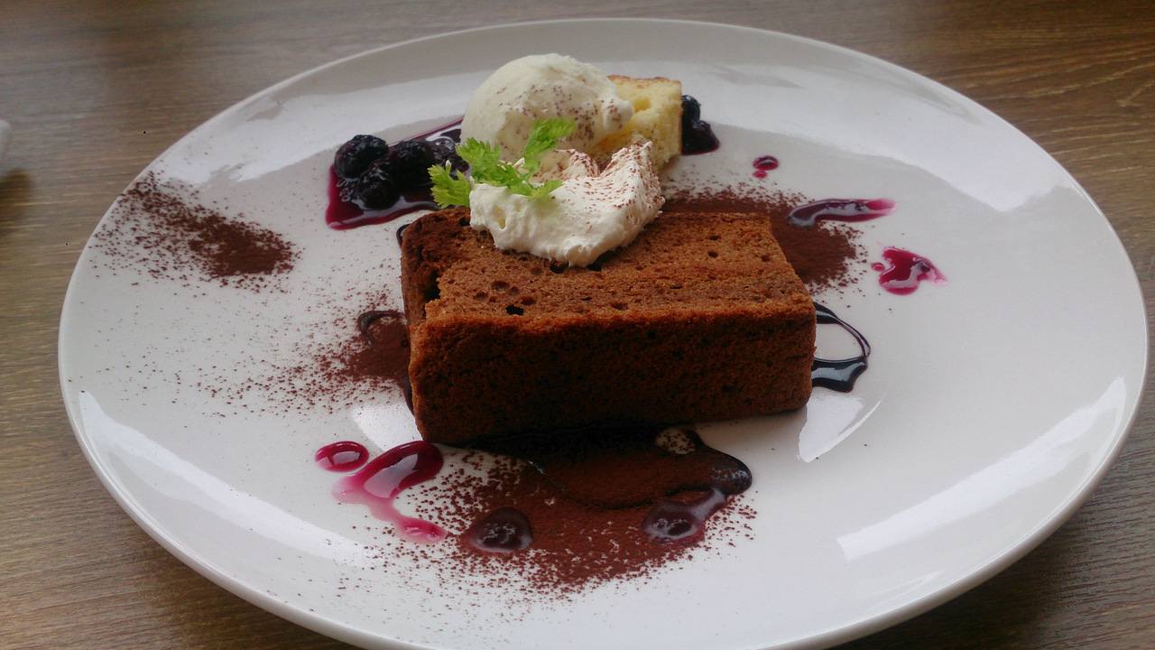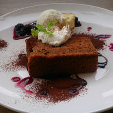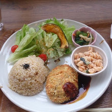 「野菜と玄米の健康定食とドリンク(アイスティー)とケーキセット」で税込み1400円。