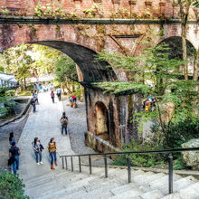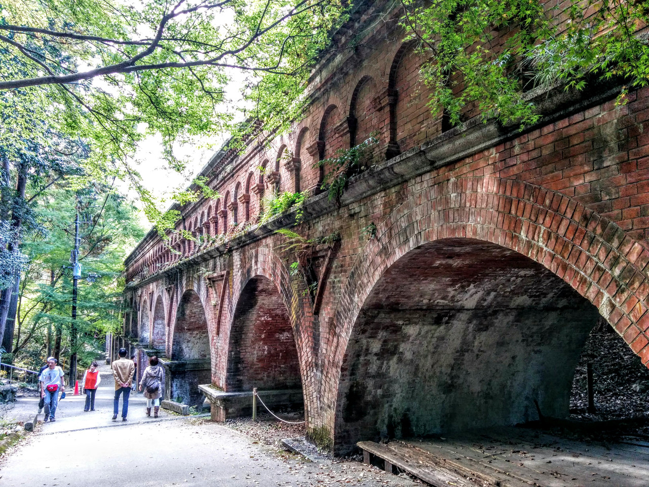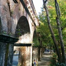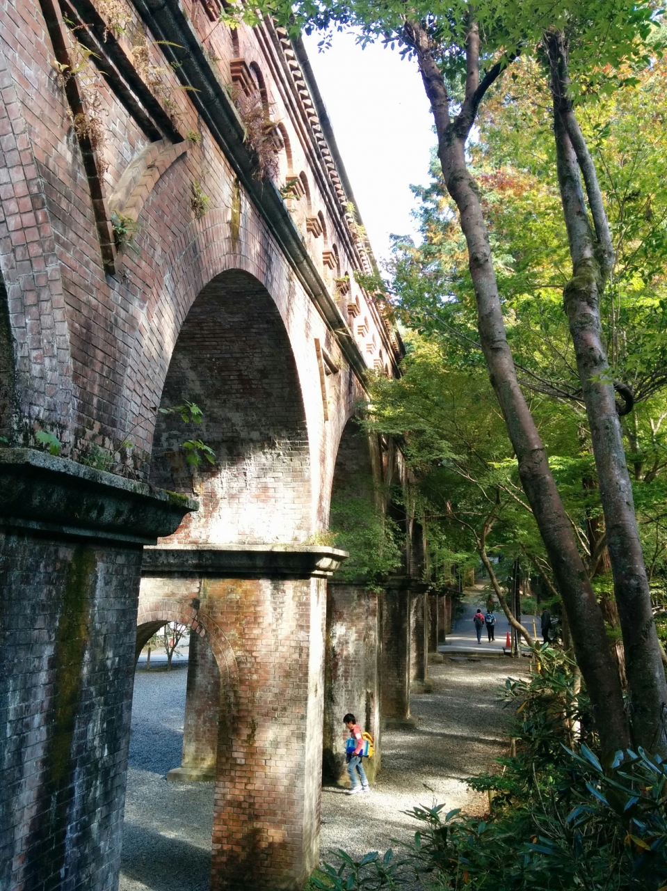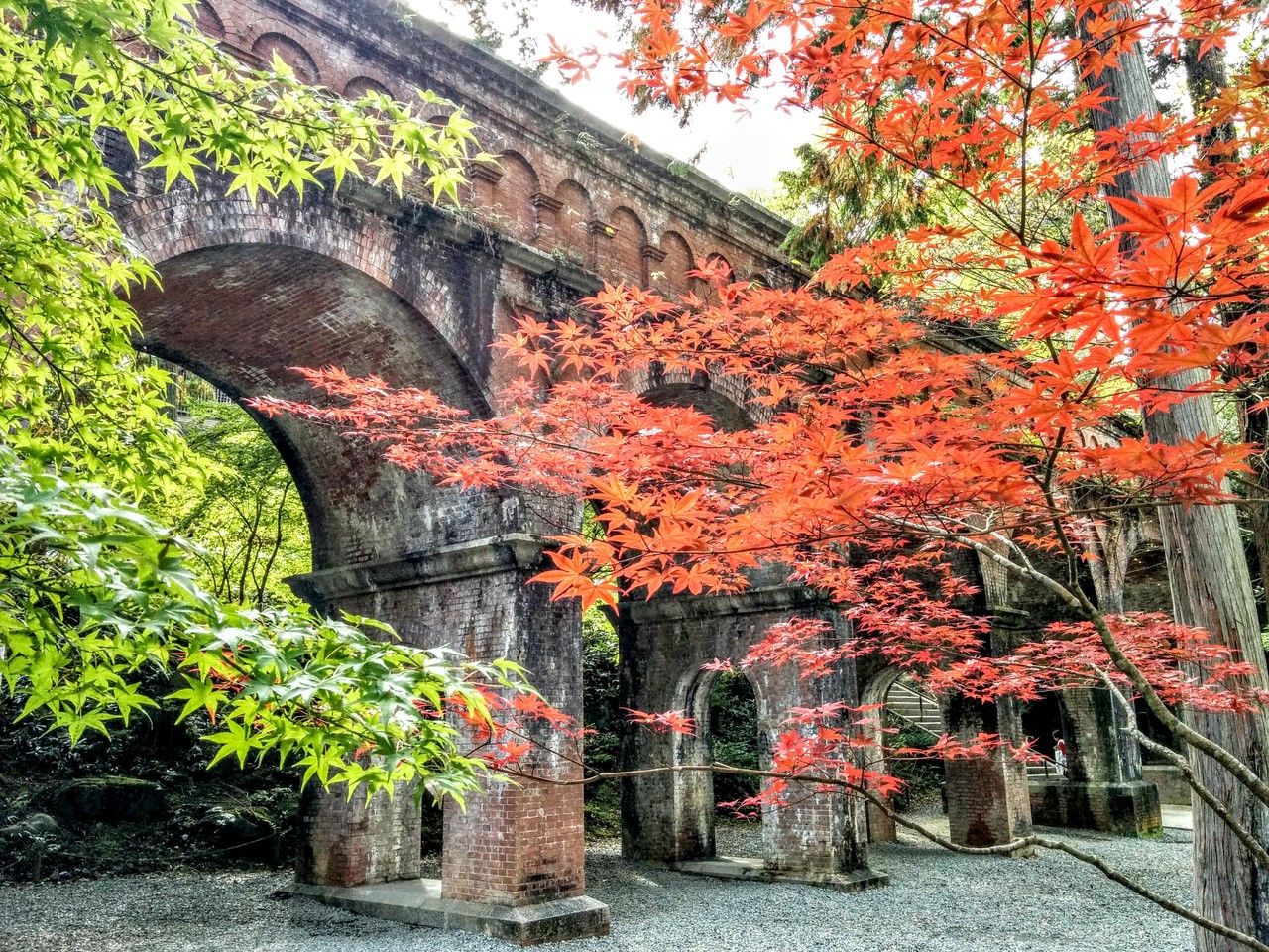 さすが、秋の紅葉の季節は、水路閣のレンガ色と紅葉のコントラストが鮮やかで絵になる光景でした。