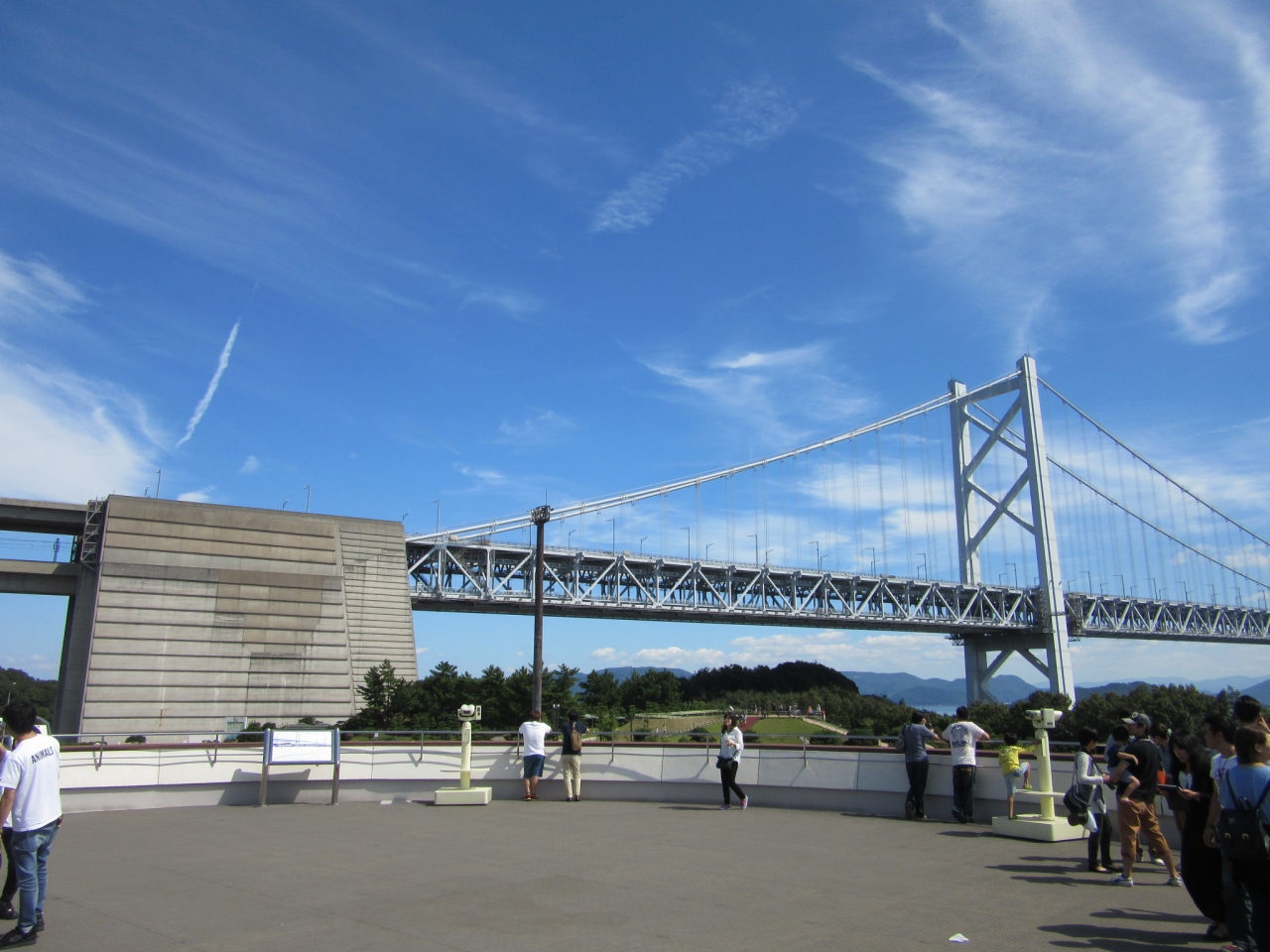 十何年ぶりに瀬戸大橋を渡りました。シルバーウィークでしたが特に大した渋滞もなく橋からの美しい瀬戸内海を堪能できました。途中で島にある大きなサービスエリアで休息を取りました。島か瀬戸大橋を眺めましたがスケールが大きすぎました。