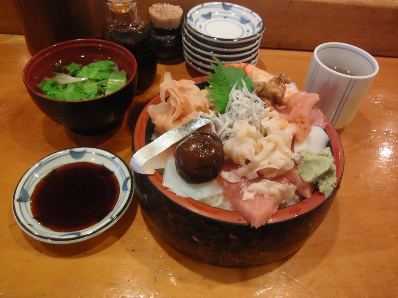 プリンスパークタワーでのセミナーに参加、昼食を外でとるため、増上寺から大門へ歩いている途中にあったこの鮨屋さんに入りました。11時40分頃入ったのですが、10数席ある1階のカウンター席は半分以上埋まっており、自分が注文して5分位で満席になりました。にぎりは大盛りにすると時間がかかると言われ、ちらしの大盛りをオーダしましたが、これが当たり!ネタはどれも新鮮で種類も多くボリュームも満点、本当に満足しました。この内容で立地も考えると千円(大盛りは千百円)でも決して高くないと思います。隣の4人グループの1人がオーダした鉄火丼の大盛りは、シャリだけでなく鉄火が凄い山盛りになっていてビックリ!今度挑戦してみたいですね。