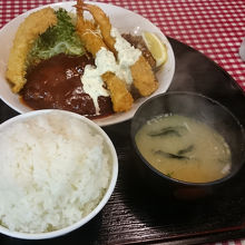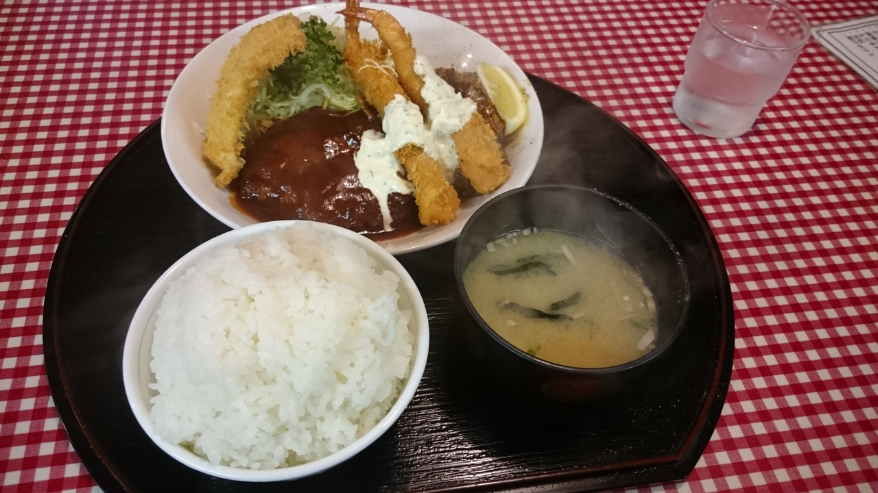 阿佐ヶ谷と三鷹で展開するガッツリ系のお店。三鷹駅北口から徒歩数分。中町新道沿いにあるお店の前には、大きなメニューと食券の自販機があります。お店は居酒屋風(居酒屋の居抜きじゃないかと思う)で、ハーレーダビットソンのイラストがあると思えば、漢和辞典や馬の置物があったりと、統一感はありません。夜は居酒屋なのか、お酒のメニューが貼られています。色々なおかずが食べられる「セレブスタミナ野郎定食」を頼みましたが、お皿の半分を陣取るハンバーグは市販のもののようですが、外れはなし。エビフライは小さめですが、カラット揚がっていました。バラ肉の炒め物は味が濃いのでご飯が進みます。カツは守カツのような感じてこちらもカラット揚がっていました。今日はガッツリ食べたい、というときにオススメ。