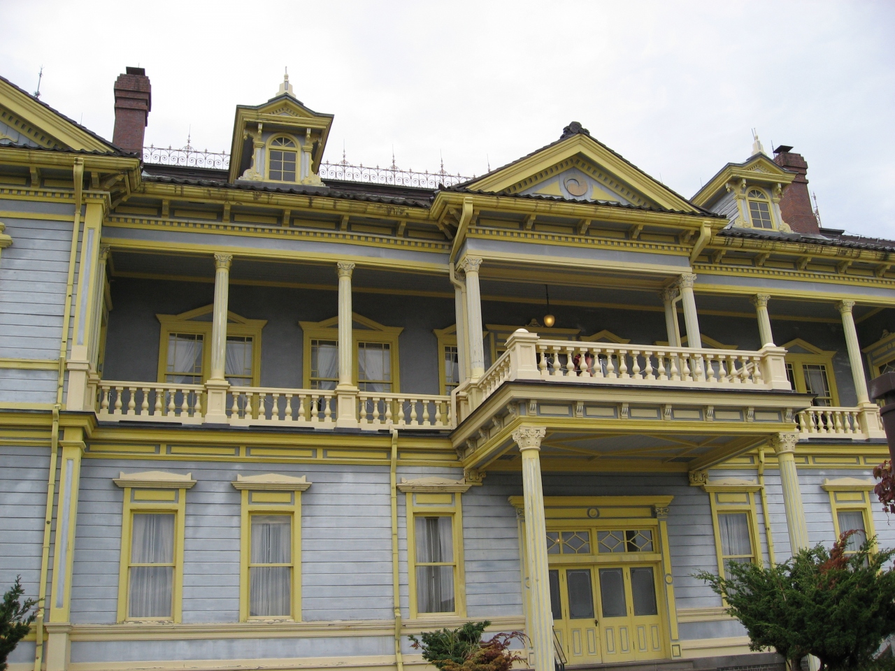元町公園の上にあるカラフルで左右対称のコロニアル建築の建物です。入館には300円がかかりますが大広間や西洋風家具がある部屋など見どころがあります、一番はやはりミニバルコニーから見える函館の町と海だと思います。