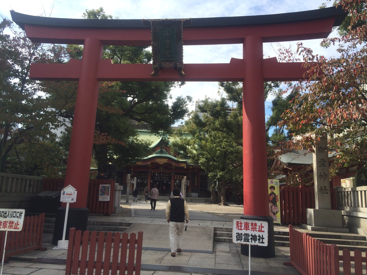 地下鉄淀屋橋と本町の中間くらいの位置にあり、どちらからも徒歩5分程度です。少しさびれた感じのビジネス街の中にありました。ビジネス街にあって真っ赤な鳥居や社殿がとても鮮やかで印象的でした。七五三のお参りの方がちらほらみえましたが静かな神社でした。明治期には人形浄瑠璃の文学座があったようです。