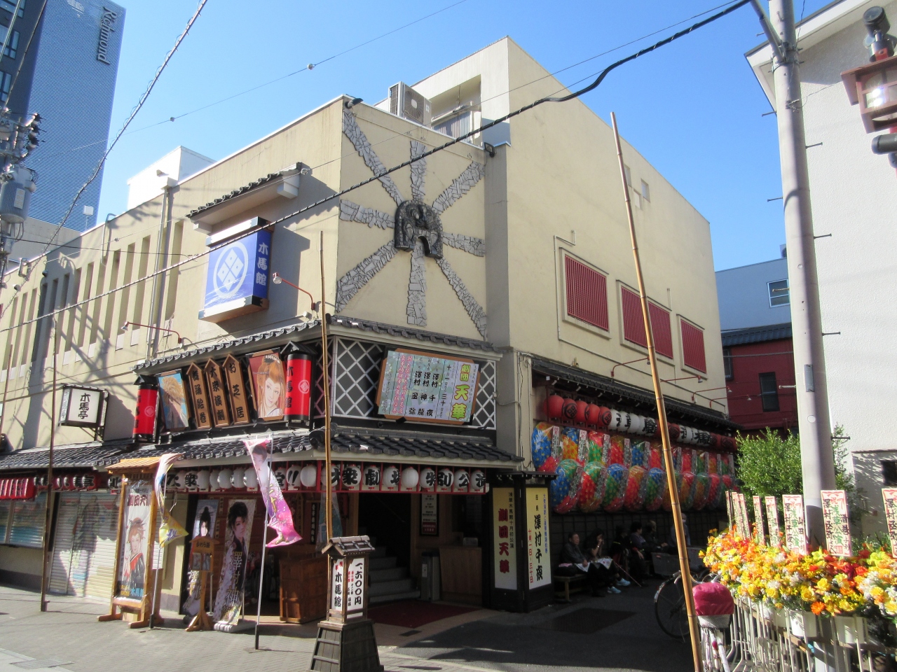 浅草寺の西側、つくばエクスプレスの浅草駅から近い場所に、大衆演芸の劇場「木馬館」があります。建物の雰囲気はが華やかだった時代を回想に誘います。西参道商店街の中に有ります、そこに良くマッチして人情あふれるお芝居が演じられています。