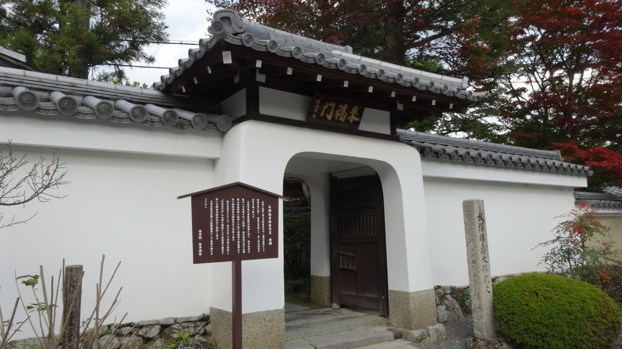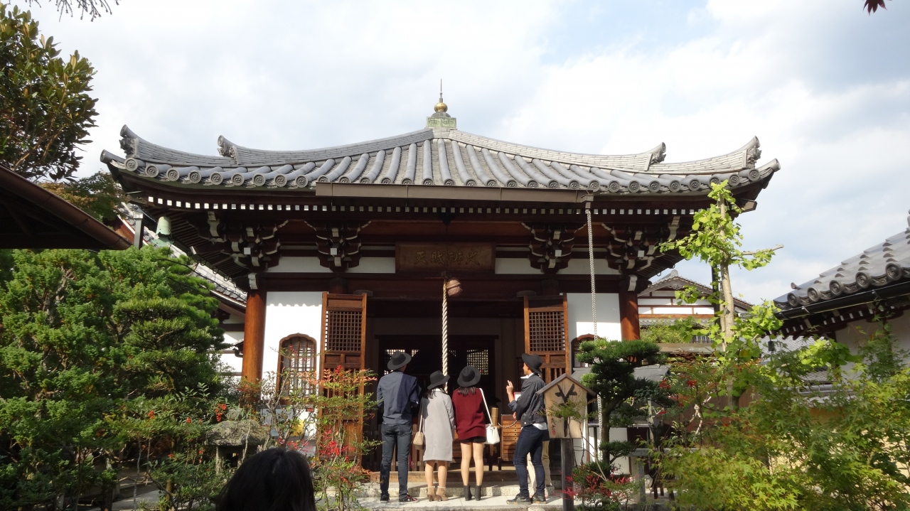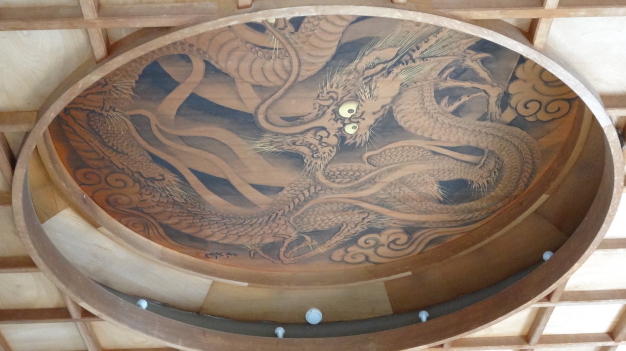 天龍寺境内にはいくつかの塔頭があります。慈済院もその一つで、来福門と呼ばれる白い土壁でできた中国風の門構えが気になり中に入ってみました。中には天龍寺七福神の弁財天を祭る弁天堂がありました。弁天堂の天井にも小さな雲竜図がありました。