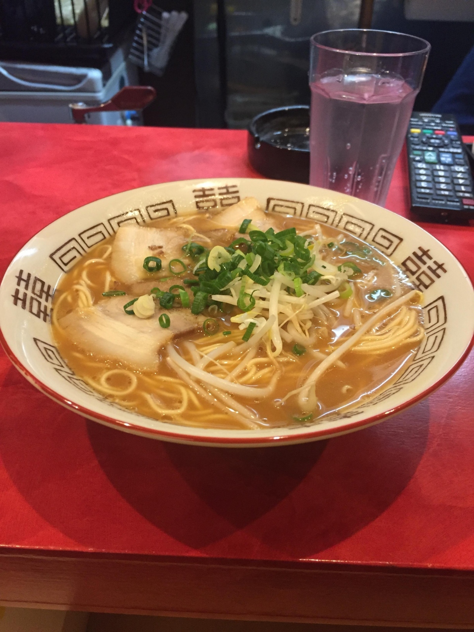 立町にある小さなラーメン店で、7人で満席です。ランチタイムから夜中3時ころまで営業されていますが、多くの人が並んでいることもあります。クセがなく飽きのこないとんこつ醤油ラーメンで、一度行っただけで大ファンになりました。