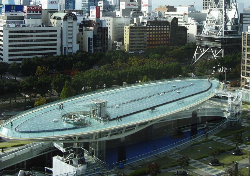 2階にあたる「芝生広場」や屋上の「水の宇宙船」へ楽に