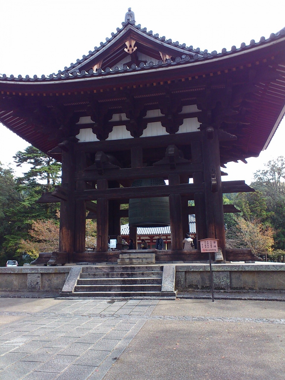 奈良の大仏さまをお参りした後に二月堂へ少し遠回りして石段を登って行くと、立派な鐘楼が出現します。普通は大仏さまを見た後に、手向山八幡宮の方へ向うので、この辺りにはあまり観光客がいません。この鐘楼も国宝に指定されています。鎌倉時代に再建されたものです。