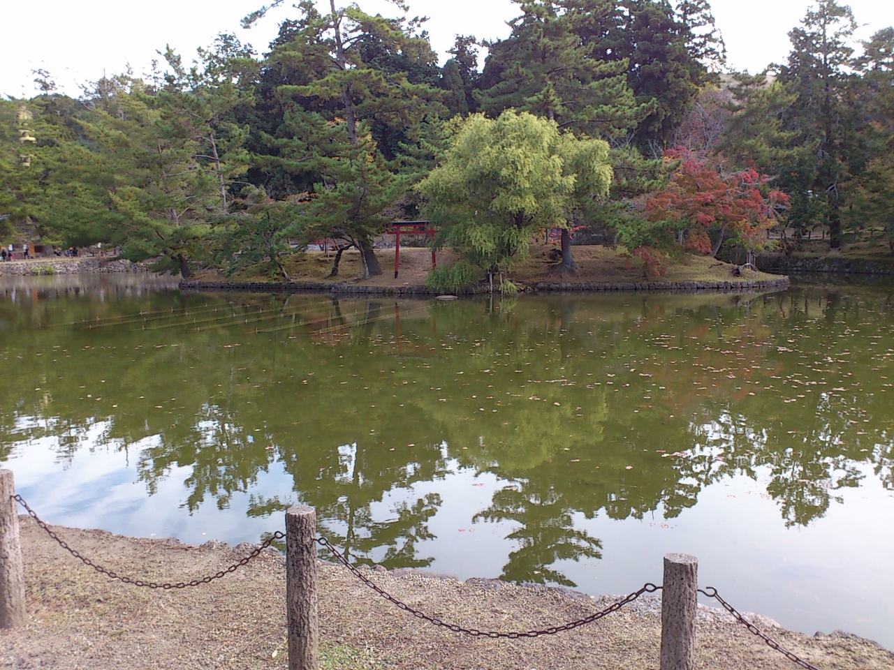 東大寺の荘厳な南大門をくぐって、大仏殿に向かって歩いて行くと、左手には東大寺ミュージアム、右手にはこの鏡が池が出てきます。道沿いには鹿が歩いていて、池の中では、鯉や亀が泳いでいます。つい大仏殿まで急いでしまいますが、のどかな場所ですので、ゆっくり眺めるのも良いと思います。