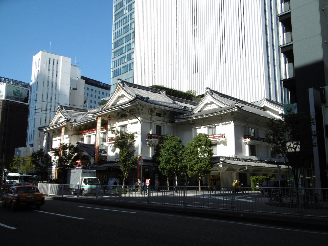 歌舞伎座を正面から見て右側の道路が“銀座木挽町通り”です。