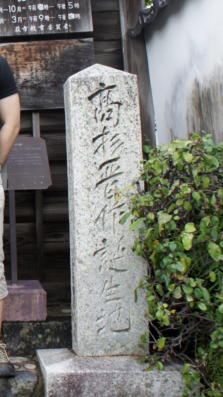 高杉晋作誕生地は、日本の道100選にも選ばれている菊屋横丁にあります。石碑が建っており、建物の中に入ることはできませんが、縁側から中を見学することができます。