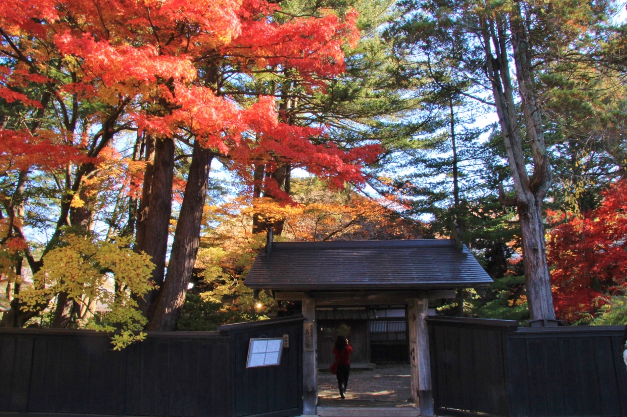 角館の内町武家屋敷通りの最北に位置する上級武士の屋敷です。現存する角館の武家屋敷の中で最も古いものと言われています。起こり破風に懸魚の付いた玄関は高い身分の家柄であったことの証です。こちらも紅葉が綺麗でした。