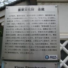 現地にある説明板によると、『内部は二室、床下には敷石が敷き詰められ、入口の扉は三重構造、小窓は土戸と鉄格子、床下の換気口や窓にも鉄格子がはめられている』とあり、防災と防犯に特に工夫された構造となっています。