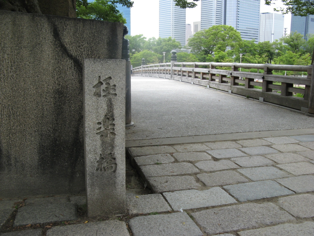徳川大坂城再建の折に架橋された橋は明治維新の戊辰戦争で焼失、現在の橋は昭和40年(1965年)に再建されたものです。橋そのものはコンクリート製で価値があるわけではありませんが、橋から内堀越しに見る天守閣は絵になります。