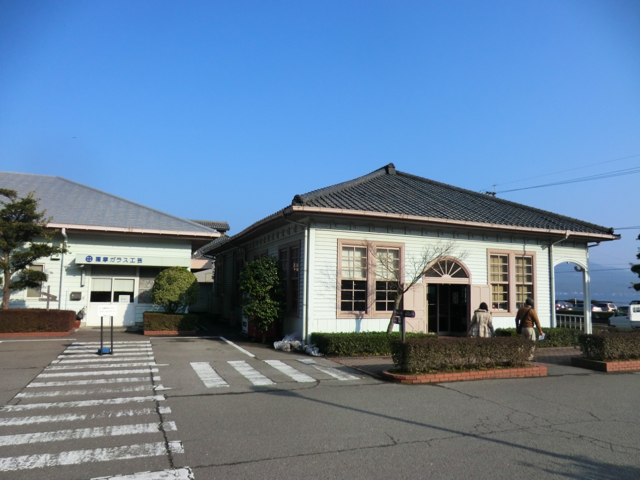 磯工芸館の建物は、吉野植林所の事務所として、明治42年に建てられたもので、昭和61年現地に移築されたもので、登録有形文化財に指定されています。薩摩切子を中心に、薩摩焼などの工芸品をミュージアム風に展示販売されています。また、薩摩ガラス工芸(薩摩切子工房)と隣接し、ガラス加工の作業風景が見学できます。