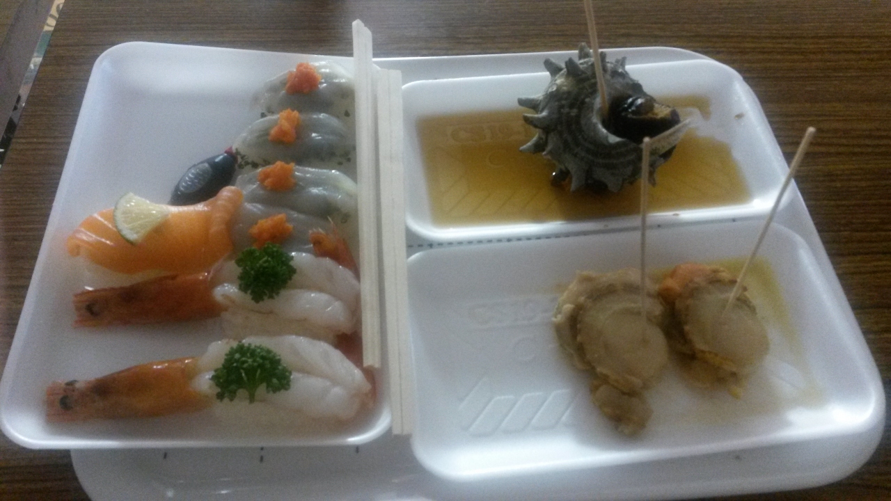 9時半に鐘の音がなると同時にいっせいに営業がはじまるので、人が多いと、お店ごとに人がならんでいますが、品揃えが豊富なので、20分くらい間をおいて買っても大丈夫です。また、スタート一番は混雑しているので、時間に余裕があるのであれば、まずは食べる席を確保しておいてからでもいいかもしれません。とにかくお寿司が安くておいしい!サザエが微妙だったのが残念でしたが。
