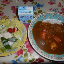 ちなみに、海軍カレーにはサラダと牛乳が付いてきました。