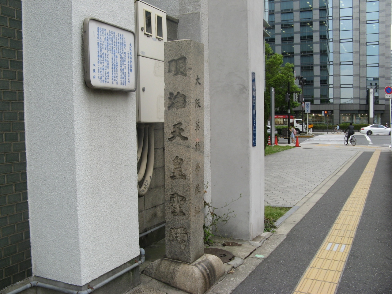 地下鉄の天満橋駅から南に300mほど、大阪府庁別館の北側に 「明治天皇聖蹟・大阪英語学校址」と書かれた石碑とその横に「大阪英語学校跡」という説明板があります。