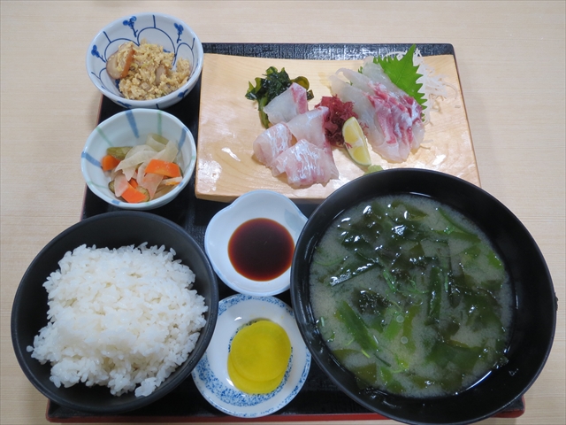 「漁協食堂うずしお」は北灘さかな市場の中にあります.日替わりのおまかせ定食が800円と,結構お得でボリューム満点でした.他に鯛の刺身定食は1100円でしたが,プリプリした食感で,とても美味しかったです.