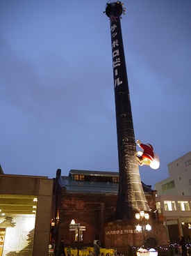 北3条通り沿いに有るサッポロファクトリーの冬の風物詩になった大きなクリスマスツリーは見応え充分です。またレンガ館の手前の広場では煙突を登るサンタクロースが現れました。この場所だけはいち早くクリスマスムード満開です。