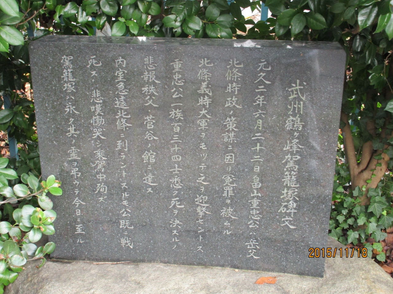 約200メートルほどの場所には【重忠の墓】があり、さらに下ると【重忠討ち死にの跡】もありました。畠山重忠と【鶴ヶ峰】の縁を知ることができた。