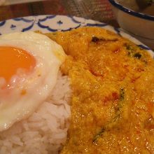 東京駅日本橋口のほう。日本ビルB1にあります。この手のタイ料理やは、東京駅周辺に複数ありますが、ランチは、一番安いかも?日替りランチ、スープ付きで800円でした。海戦と卵のカレー炒め、目玉焼きのせ。たまごたまごですが、味はなかなか美味しかったです。
