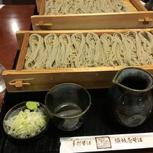日本酒とへぎそばを頂きました。へぎそばは、その入れ物から付けられた新潟名物のそばです。信州が隣にあるだけに、美味しかったですね。