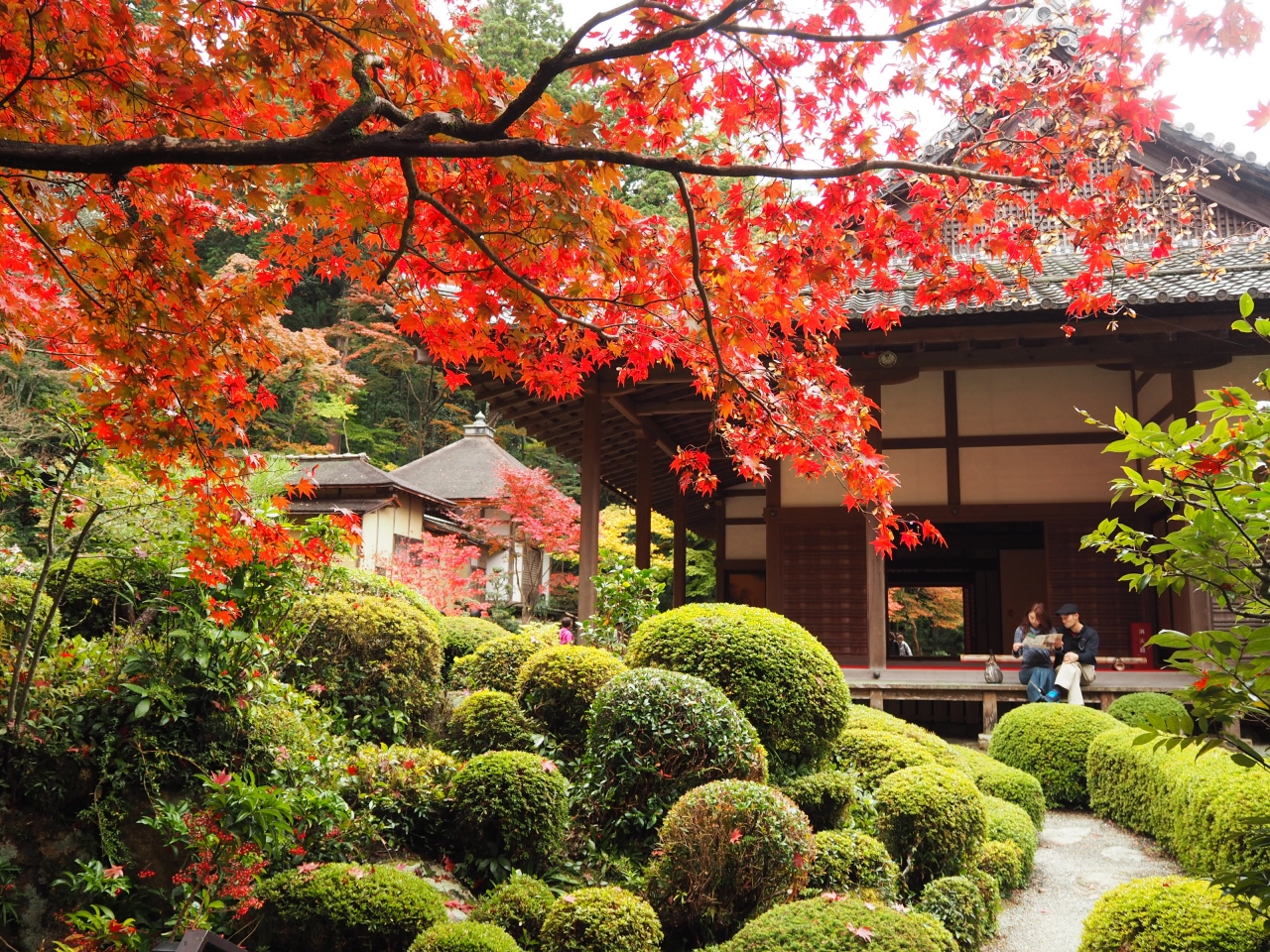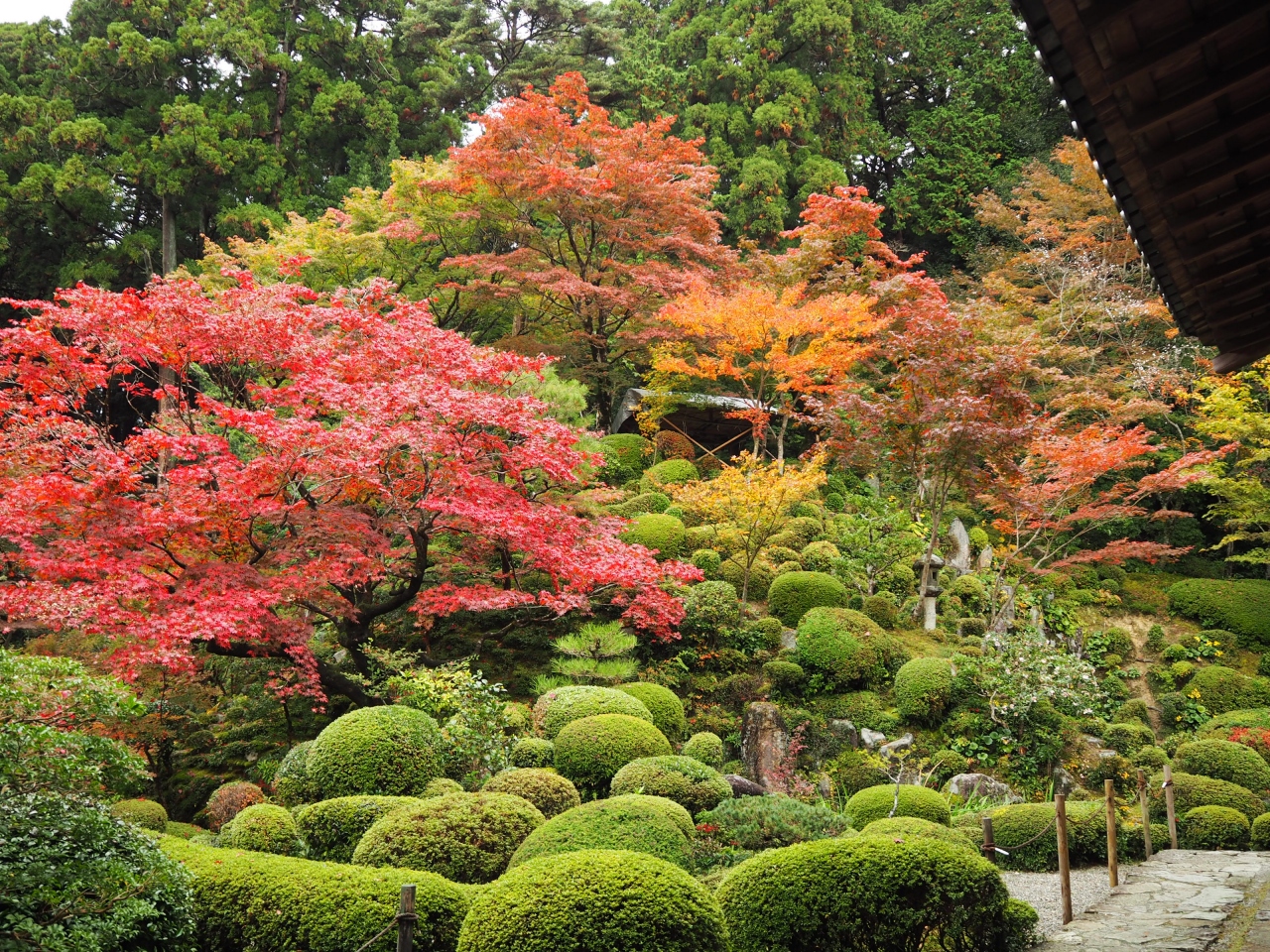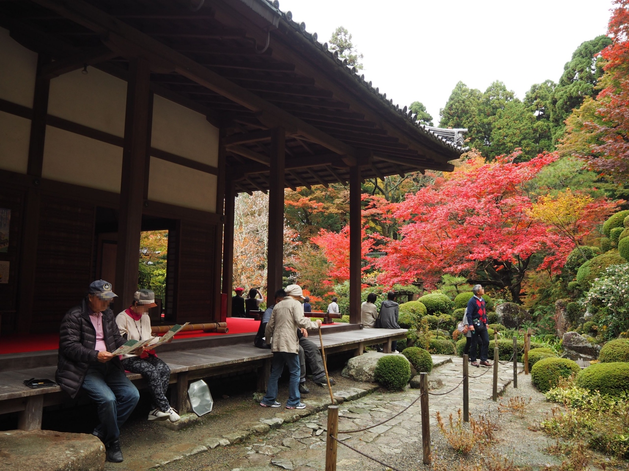 金剛輪寺の境内にある明寿院。かつては学頭所として使われた建物で、1977年に火災で書院、玄関、庫裏を焼失。現在の建物はその後に再建されたものです。こちらのお庭は国の名勝庭園にしていされており四季折々の花が咲きます。秋は紅葉が美しくいつまでも眺めていたいお庭です。