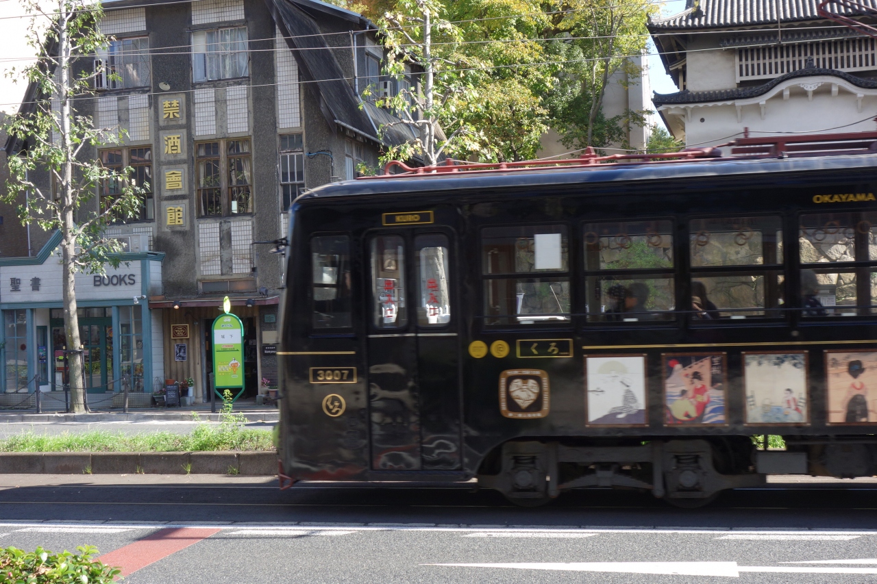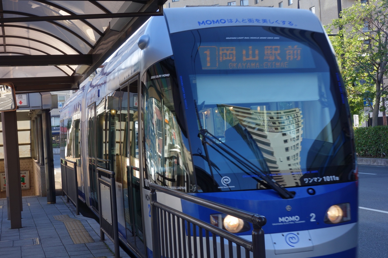 日本で一番距離が短い路面電車ですが、個性豊かな路面電車が走っています。ネコミミが可愛いたま電車、重厚で渋い色のくろ、かっこいいMOMO、全て岡山出身の水戸岡鋭治さんがデザインした電車です。一日乗車券もあり400円です。