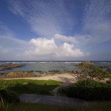 駐車場に車をとめると左側が海、右側に公園が広がります。