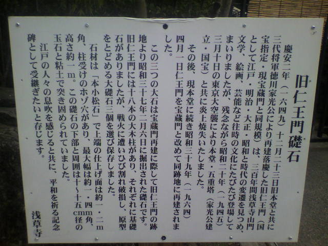 浅草寺の境内、仁王門のそばに「旧仁王門の礎石」だという大きな3つの石が置かれています。