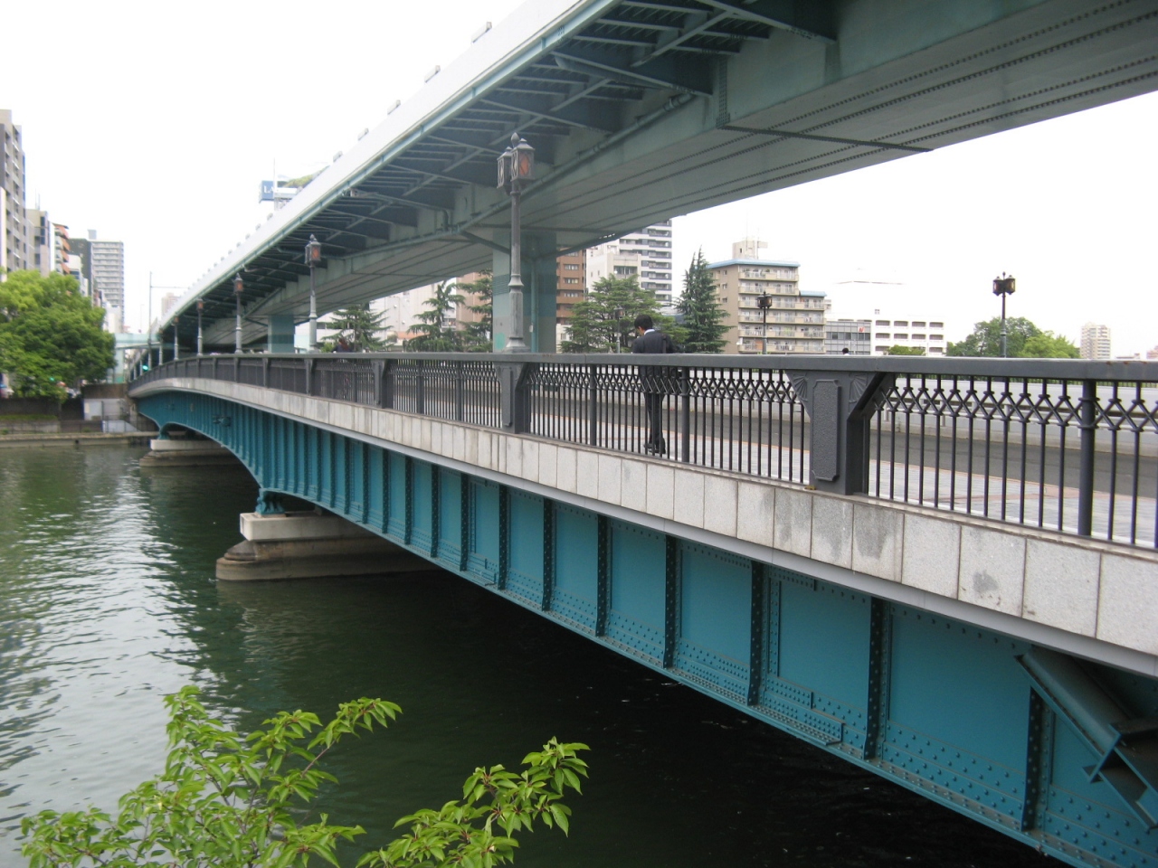 珍しい2階建ての橋になっており、上部は土佐堀通をまたぐ跨道橋になっています。周辺は水都大阪を代表するような景観になっていますが、橋そのものはそれほど見ごたえがあるものではありません。