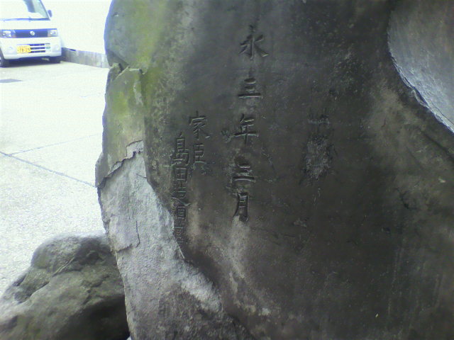 菅沼定敬は、江戸時代後期の歌人だそう。「敷島のみちにはせきもあらなくに、なとてこころのとほらざる覧」と刻まれているようです。裏には「永三年三月 家臣 島田~~~」というのが読めました。