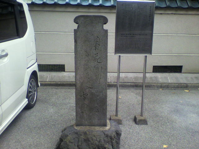 浅草寺の本堂向かって右手にある浅草神社(三社さま)の、更に裏手に駐車場スペースがあり、駐車されている車の間にひっそりといくつかの石碑が建っています。