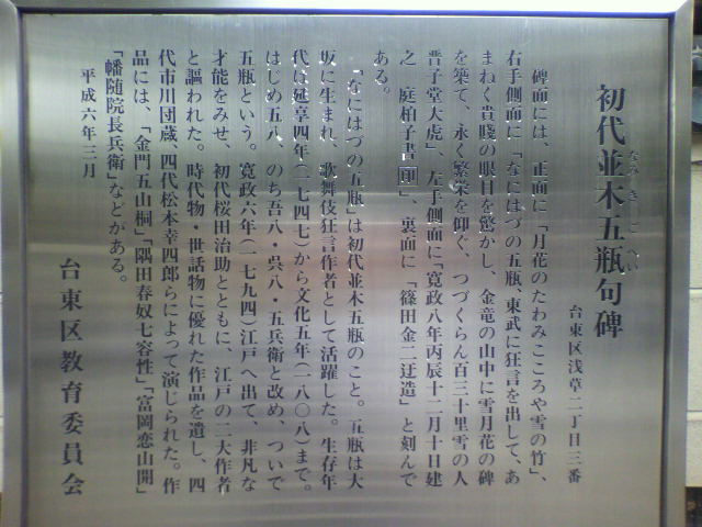 初代の並木五瓶は、大阪生まれ、歌舞伎狂言作者として活躍された人だそうです。