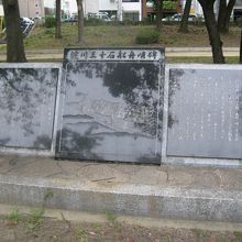 江戸時代、対岸の八軒家浜から大阪と京都を結ぶ三十石舟が運航されていたそうで、その頃歌われた歌が歌碑となって残っています。石碑は三十石舟の絵も描かれている立派なものです。