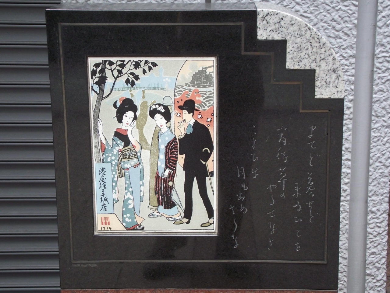 画家であり詩人でもあった竹久夢二は、この近くに 「港屋絵草紙店」 を開き、自らデザインした版画や封筒、カード、絵葉書などを売った。