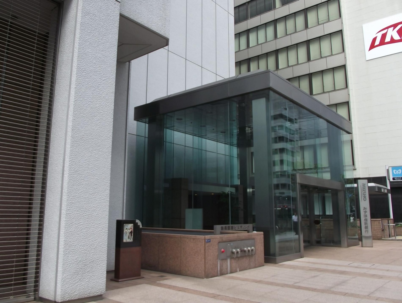 場所は、永代通りと外堀通りの呉服橋交差点の北東角のみずほ信託銀行の入っているビルの永代通り側だが、気を付けていないと見落としそうなところに立ててあります。