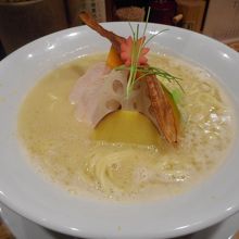 店内はカウンターだけですが、まるで料亭のカウンターみたいにすっきりしたものでした。肝心のラーメンは、クリーミーなスープが特徴で、トッピングのエシャロットバターがすごく合いました。