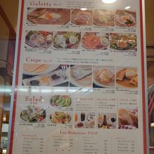 羽田空港国内線第一旅客ターミナル 地下1階 にあります。フードコートと天丼てんやの間のお店で、フランス風のカフェという感じです。軽食にもなりそうなガレットとか、デザートによさそうなクレープがいろいありました。ガレットやクレープは1000円ぐらいからだし、飲み物も1番安いものでも500円するのであきらめました。