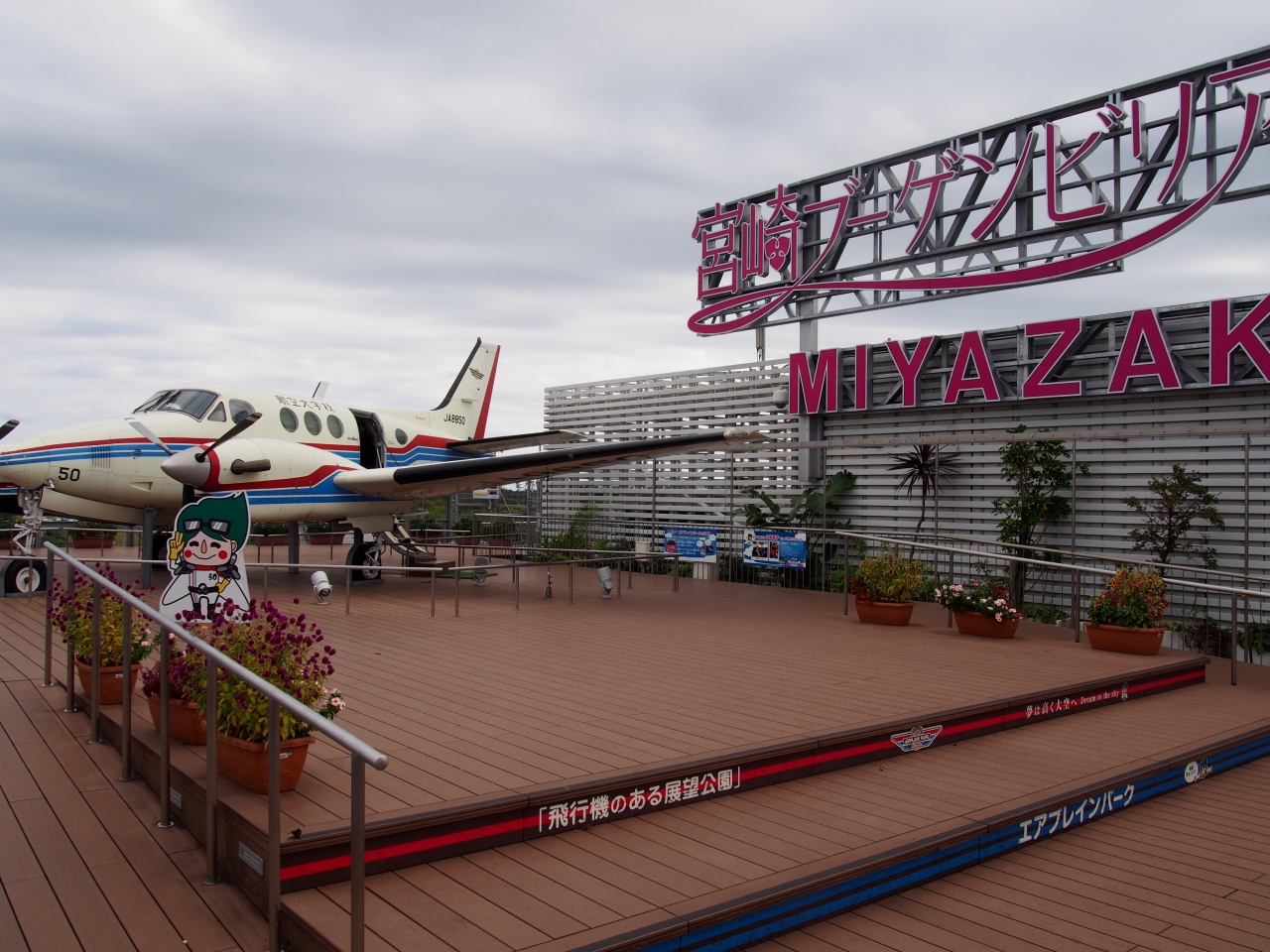宮崎ブーゲンビリア空港の屋上展望台に小型飛行機が展示されています。