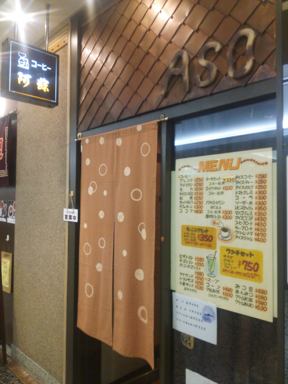 東京交通会館 B1F の阿蘇です。本当に昔ながらのレトロな感じの懐かしいお店です。とにかくリーズナブルで、このエリアで、貴重なお店です。チェーンと値段はかわりません。常連さんも多いようです。コーヒー利用ですが、とてもおいしいです。