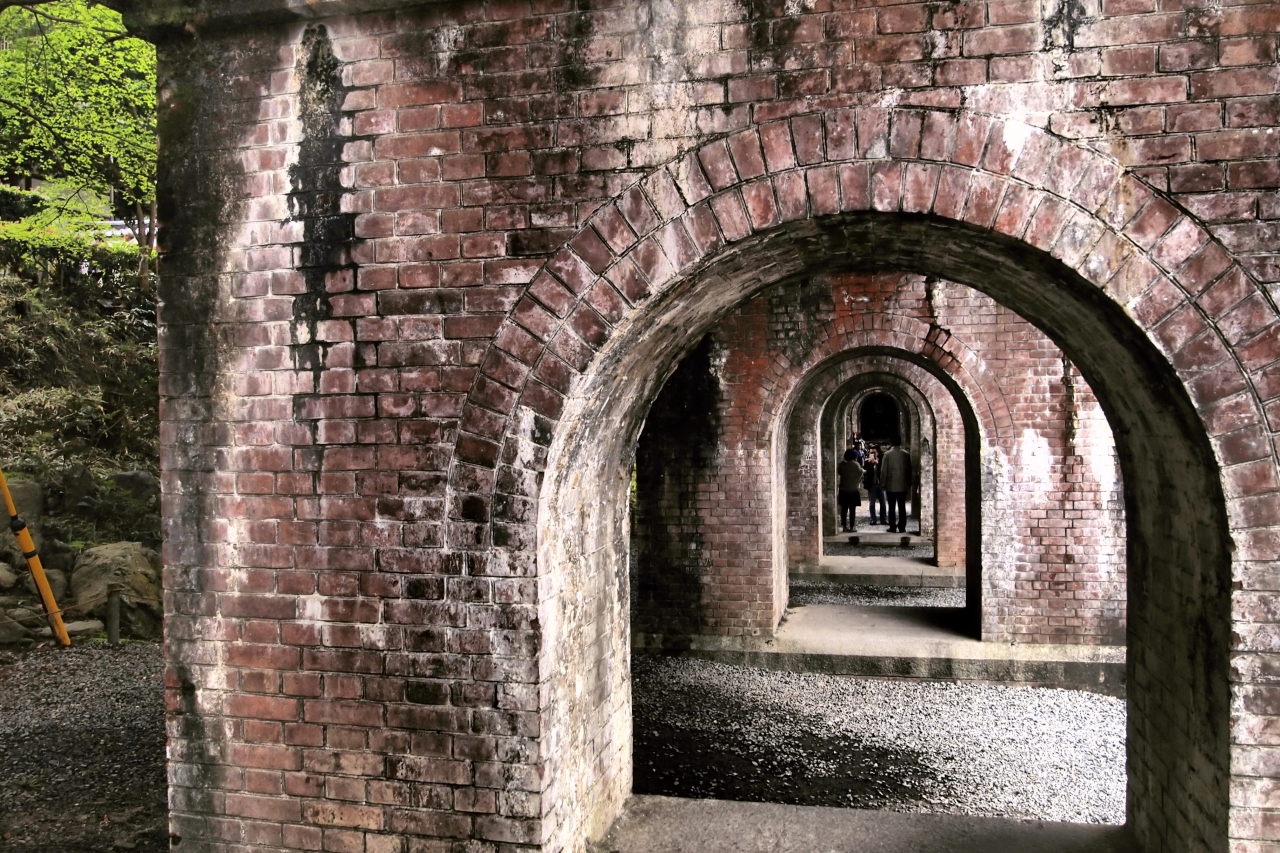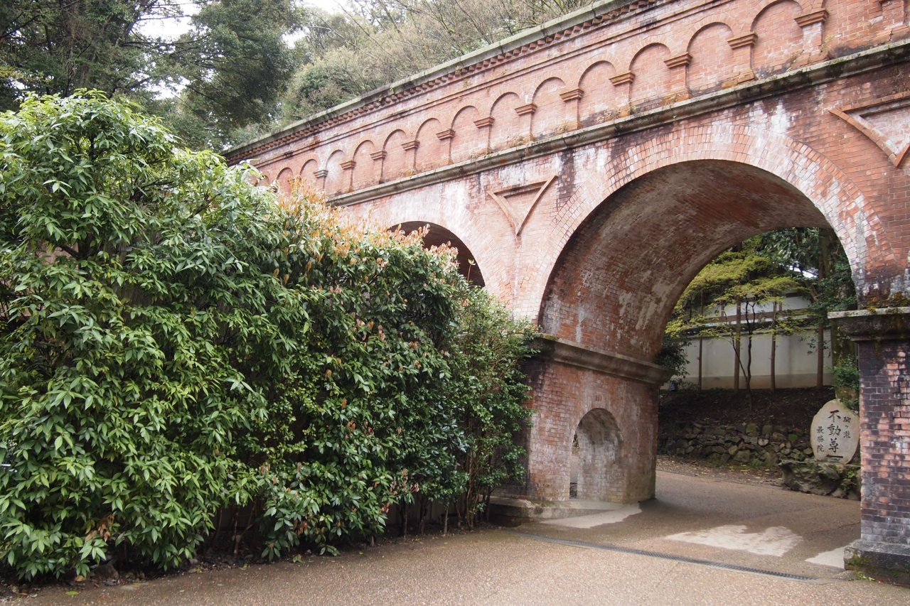 煉瓦で作られた水路閣の色は年月を感じさせるレトロな色あせくらいでまた情緒感が溢れる。