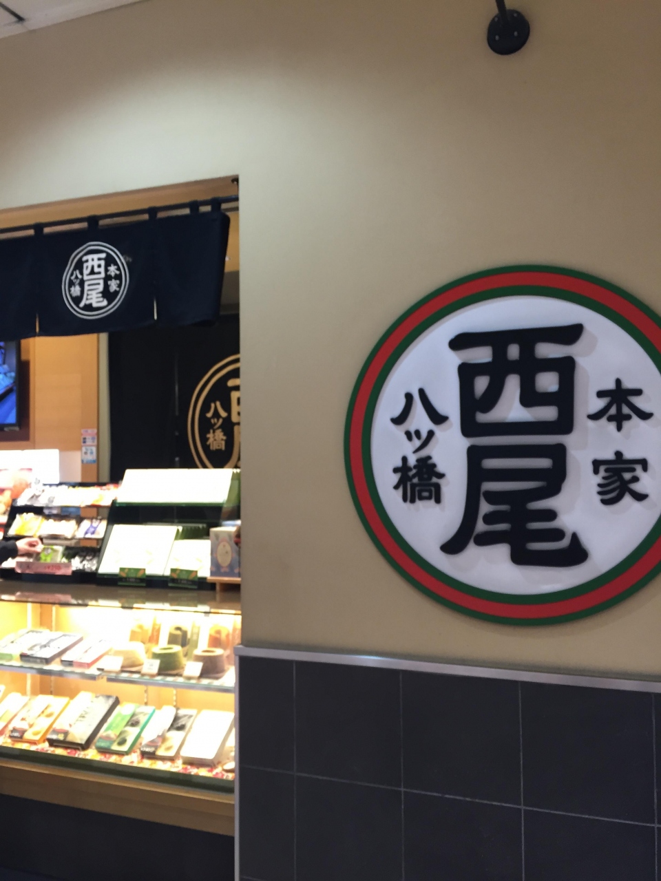 八橋のお店で店内の奥のほうが喫茶のコーナーになっています。