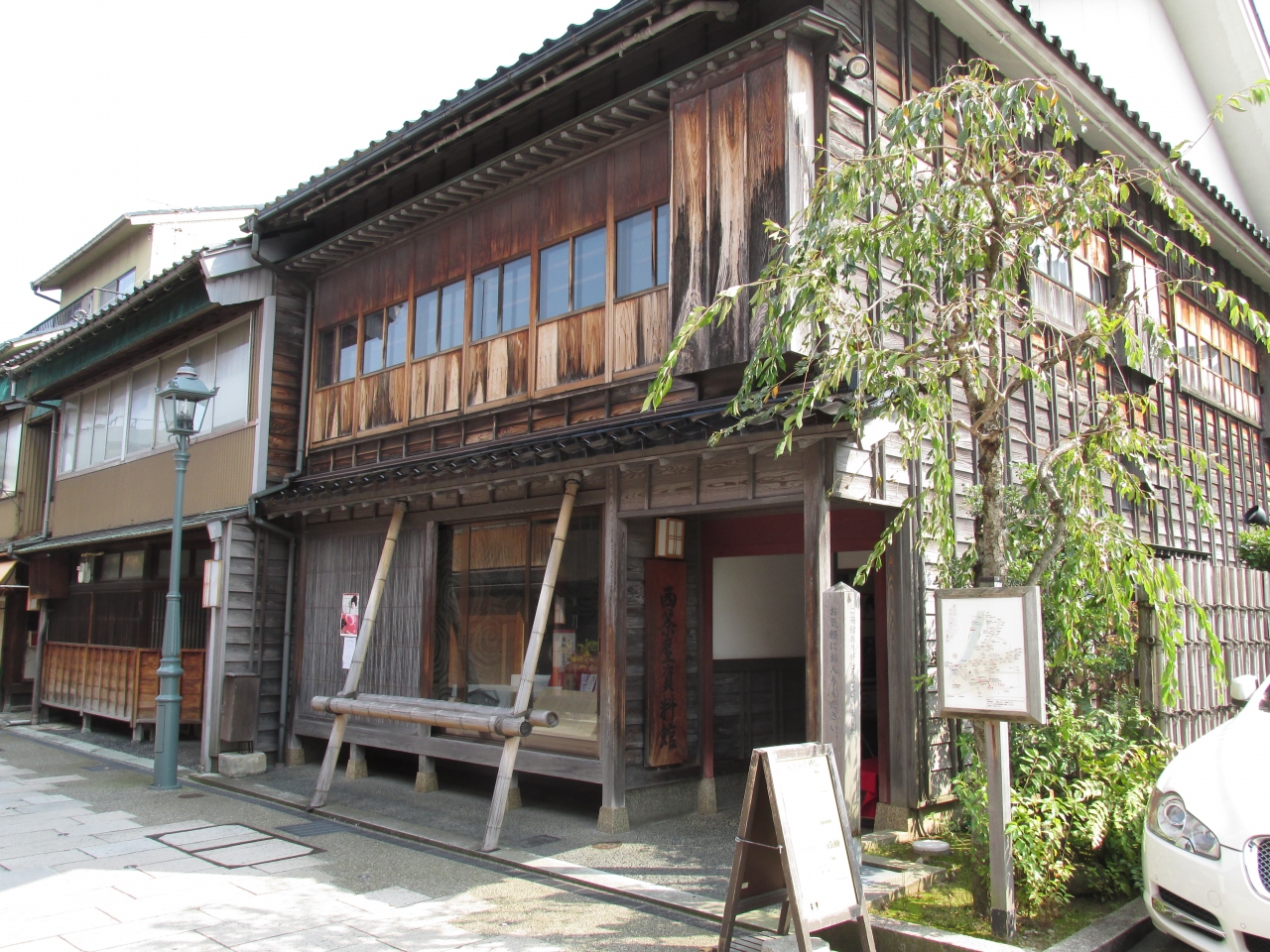にし茶屋街にある無料の資料館です。にし茶屋街はそんなに広くないので、是非行ってみて下さい。2階はお茶屋さんのお部屋が再現されています。壁が紅色で使った道具などが展示されています。また、小説家島田清次郎さんに関しての展示もあります。