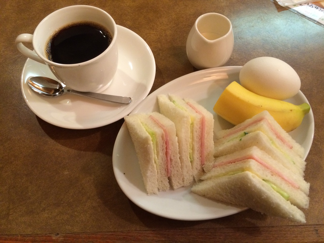 難波駅近くにある喫茶店です。古びた外観ですが、なかなかいい雰囲気を醸し出してます。モーニングは、パンと珈琲とデザートがついて540円。なんと珈琲は3杯まで無料でした!ドリップ式で本格的で、美味しかっみです。