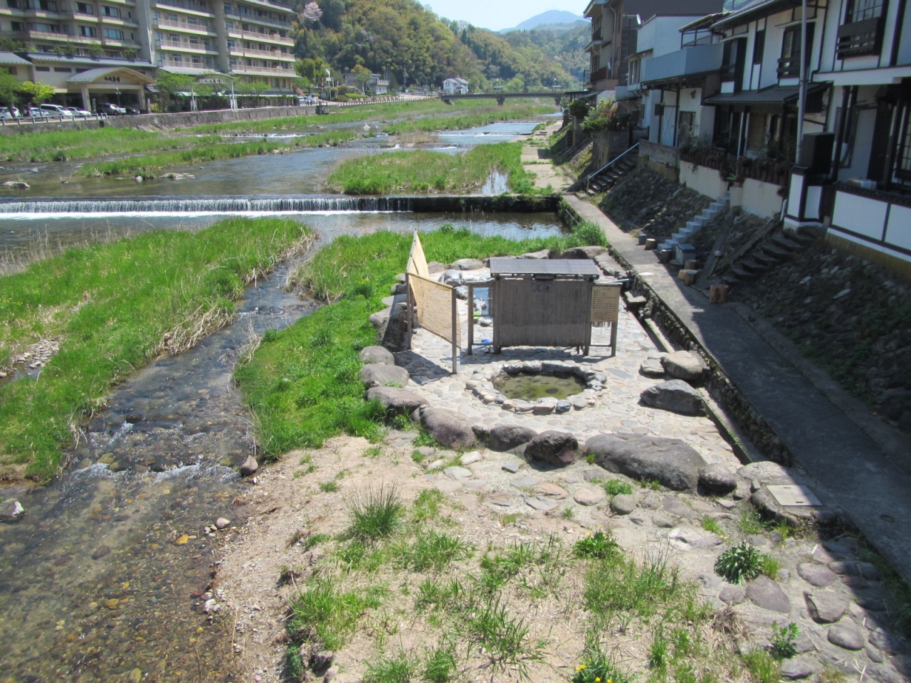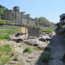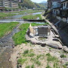 階段を下りて河原へ入るとまず小さい足湯がある。