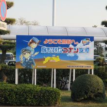 空港自体は小規模ながらも、漫画コーナーや展望台もあり、空港名の看板はマンガと同じロゴというこだわりぶり。