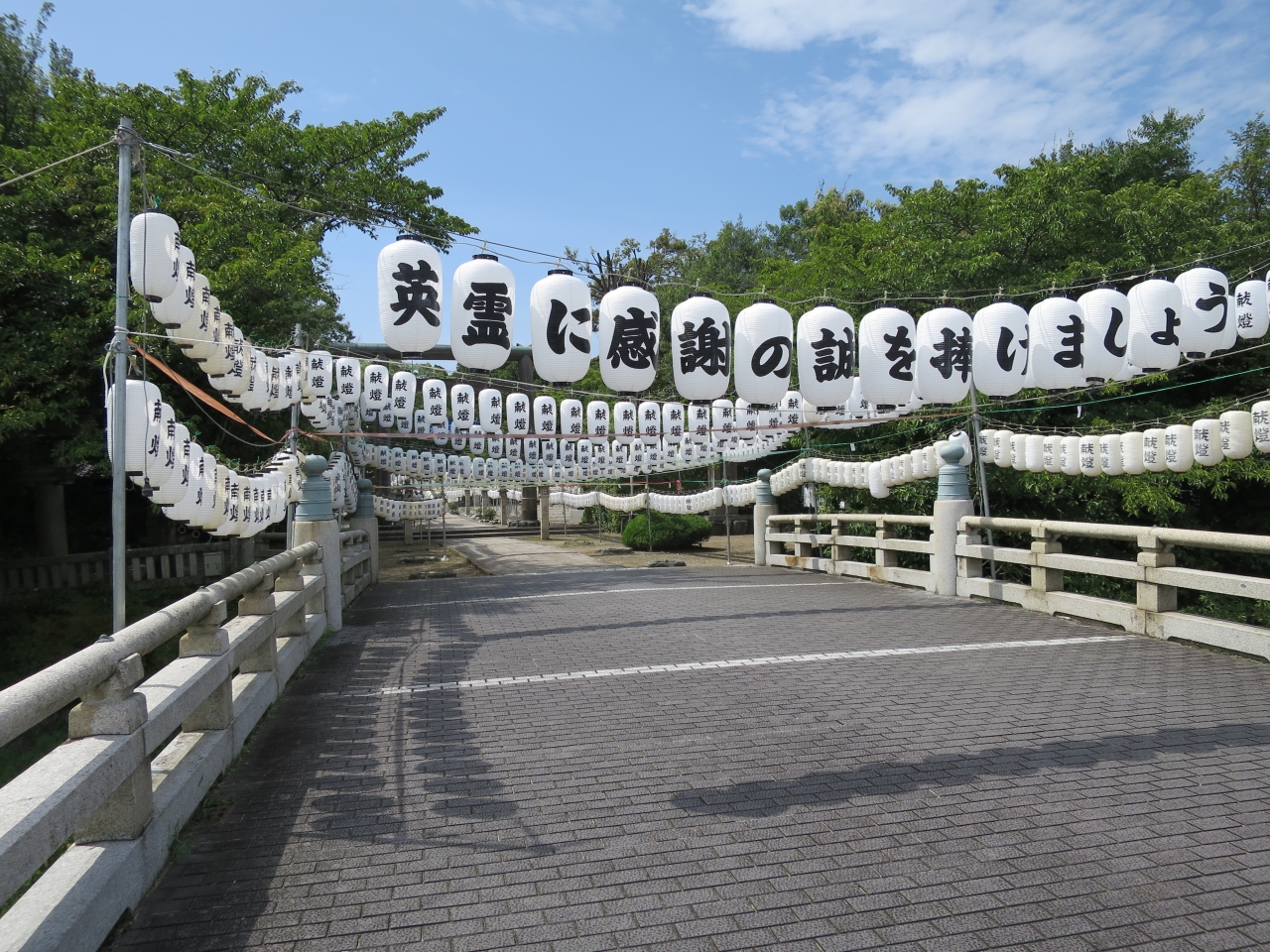 丁度、お盆の前時期に訪れたので、みたま祭の提灯が至る所に吊り下げられており、とても見事な光景であった反面、「戦争は嫌だなぁ」とつくづく思いました。けれども、提灯が意外と低い位置にあるので、歩きづらいです。